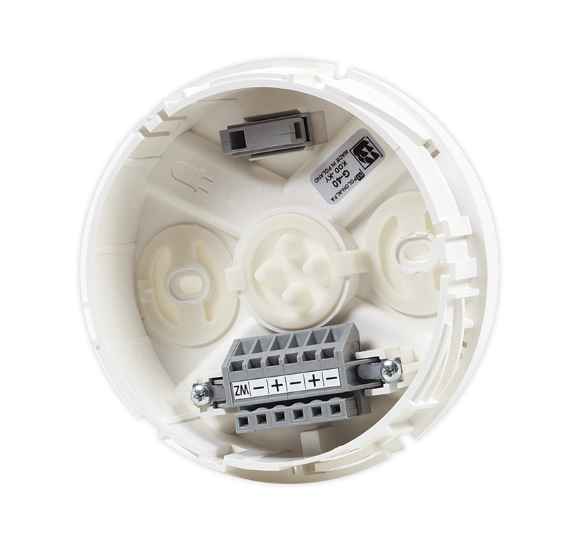 G-40 tabanı, 40, 4043 ve 4046 model menzil dedektörlerini (örn. DOR-40, DUR-4043) tavana monte etmek ve algılama hatlarını bunlara bağlamak için tasarlanmıştır. Taban, askı halatlarına veya tavanda su buharı yoğunlaşmasının mevcut olduğu odalara monte edilen bir PG-40 taban eklentisine monte edilebilir. Taban ek bir PG-7 sızdırmazlık contasıyla donatılmıştır; bu onun asma bir üs haline gelmesini sağlar. Dedektörün mekanik olarak korunması için tabanda çelik telden yapılmış, OZ-40 emniyet kapağı bulunmaktadır.