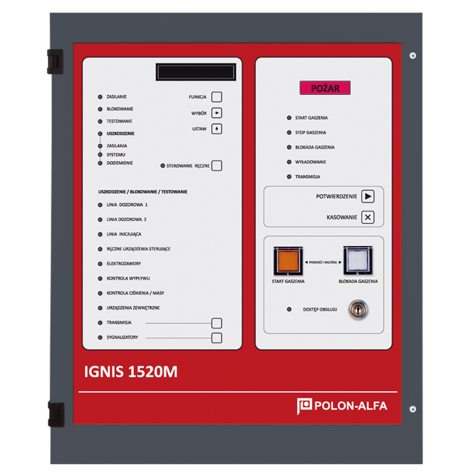 IGNIS 1520M otomatik yangın söndürme kontrol cihazı, bir yangını algılamak ve gaz, sıvı veya aerosol söndürme maddeleri içeren normal yangın söndürme ekipmanını kontrol etmek ve ayrıca kendi kendine etkinleşen söndürme sürecini izlemek için tasarlanmıştır. Kontrolör, 40 model aralığındaki geleneksel yangın dedektörleri ve özel PU-61 ve PW-61 basmalı butonlarla çalışarak, yangın söndürme işleminin manuel olarak etkinleştirilmesine ve devre dışı bırakılmasına olanak tanır. Ayrıca SD-1, SO-1 akustik ve optik uyarı cihazlarıyla da çalışır.
